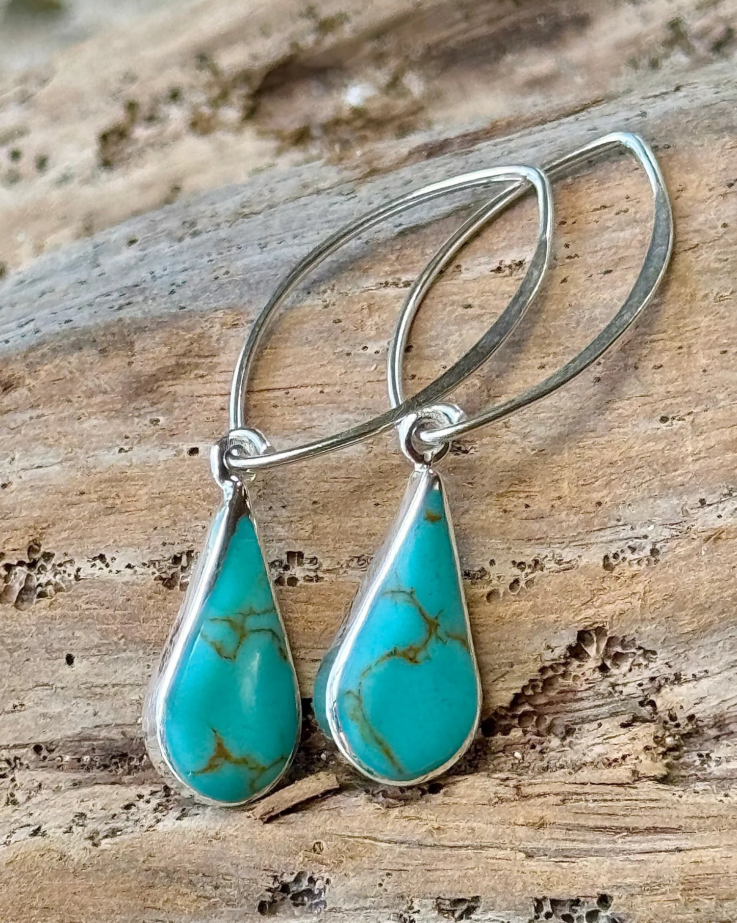 Sterling Silver & Pear Shaped Turquoise Earrings